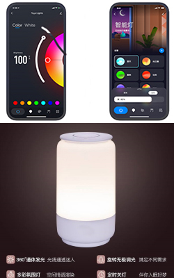 智能氛圍燈可以根據自身照明需要(如顏色、溫度、亮度和方向等)來設定自己喜歡的場景情景照明效果,根據各自要求、場景情況,在不同的空間和時間選擇并控制光的亮度、灰度、顏色的變化。便捷的智能手機也提供了更人性化的智能控制渠道,營造不同的室內智能照明效果。
