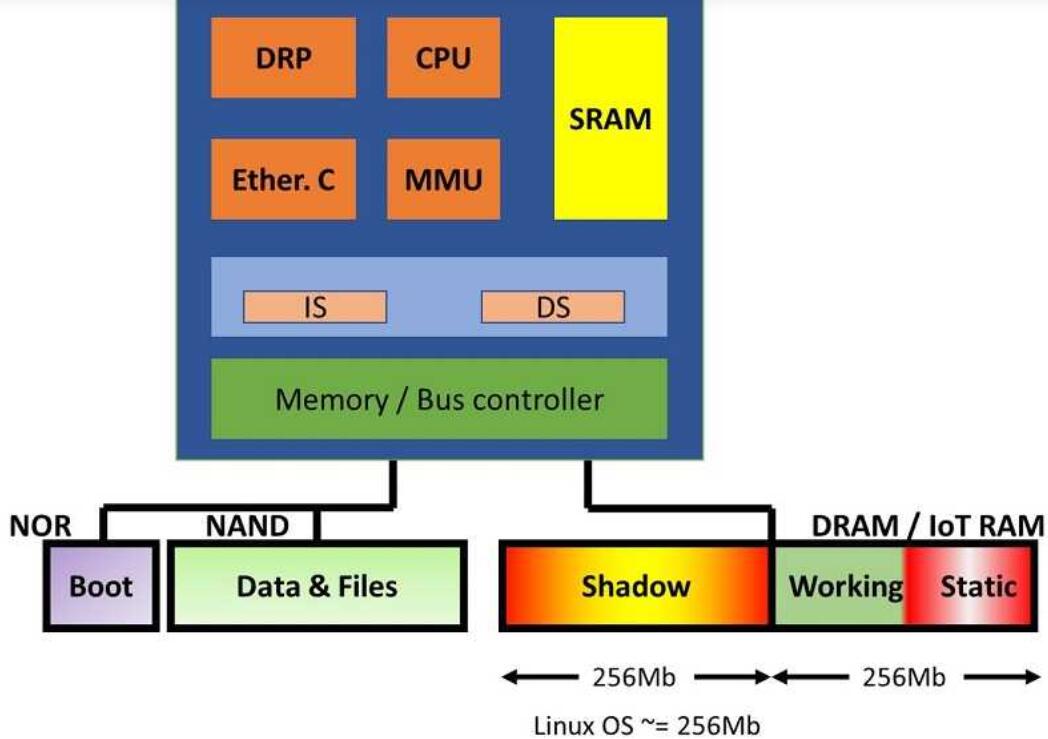 我們來看一下MCU設計中的情況,其中IoT RAM明顯比外部DRAM具有優勢。在下面的通用MCU圖中,工作/靜態存儲器部分越來越需要擴展。在整個工作空間中使用DRAM會增加系統的功耗,并需要集成刷新控制器。