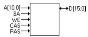地址和數(shù)據(jù)總線仍然存在,但是地址總線只有11位(用于提供要打開的行,然后提供列地址)。BA引腳指定了存儲(chǔ)區(qū)(由于在我們的示例中只有2個(gè)存儲(chǔ)區(qū),因此我們僅需要一個(gè)引腳)。WE,CAS和RAS一起用作命令引腳,因此我們可以向SDRAM發(fā)送8個(gè)不同的命令(命令包括“打開行”,“讀取”,“寫入”和“關(guān)閉行”)。使用了其他一些引腳(但未在圖片上顯示),例如時(shí)鐘,片選,字節(jié)使能...